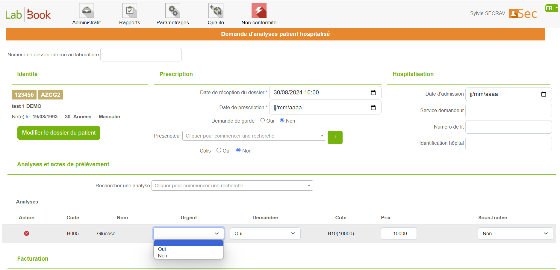 Para ativar essa opção, é essencial identificar as análises urgentes já durante a solicitação da análise. Um campo é dedicado a isso.